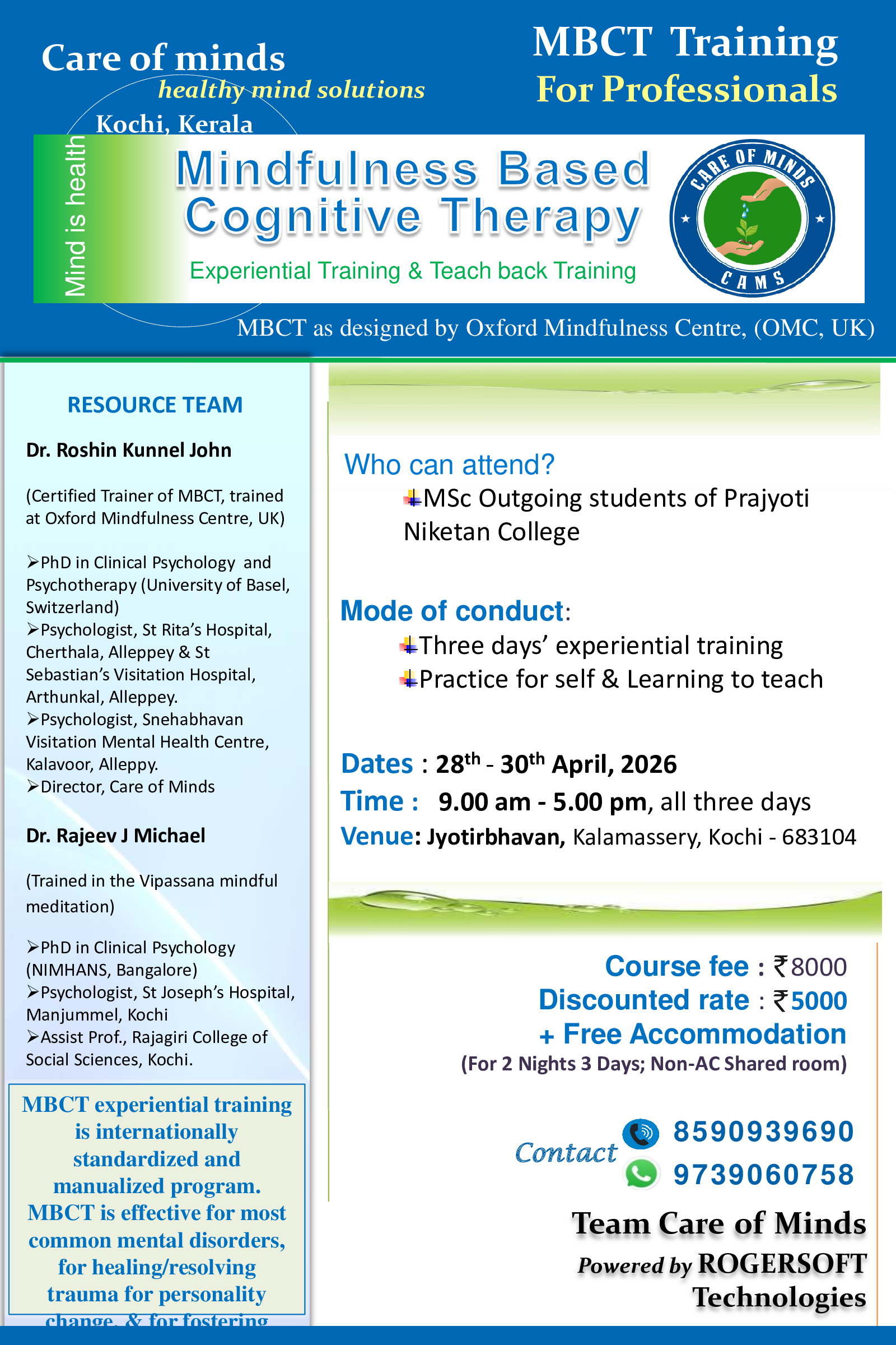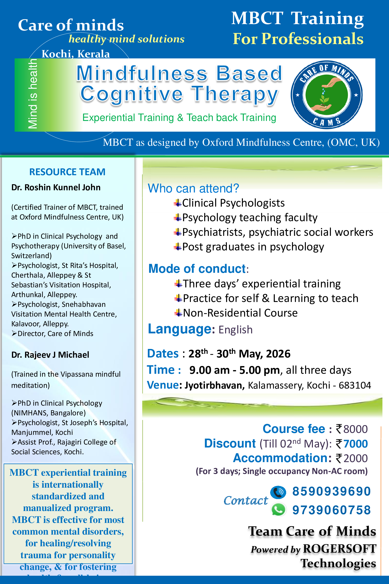 We provide skills training in small groups for academic, work-related, and parenting stress/distress, such as, MBCT, MBSR, PMT by international trainers